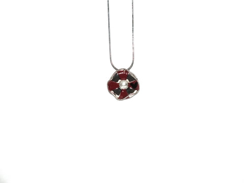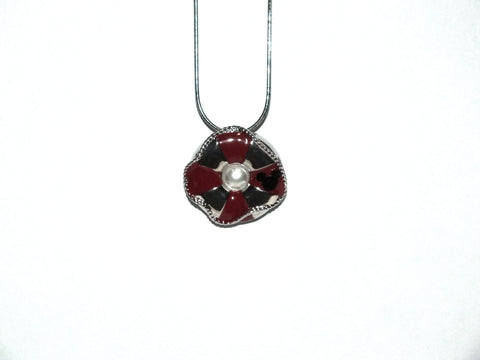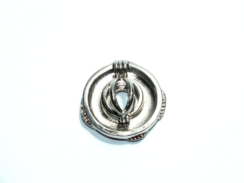 Charm: The charm is silver plated, accented with red enamel. The cage opens up for the buyer to insert a pearl or a small decorative bead or gem. The cage and necklace are new. The cage will hold up to an 8 mm pearl. The charm is 1" x 1". The back of the cage is stamped "RJS" which is the artist's mark.